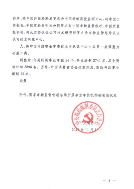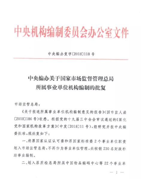 其實在2018年11月15日中央機構(gòu)編制委員會辦公室印發(fā)的文件中第三條明確批復(fù):